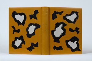 PRÉVERT (Jacques). La Pluie et le beau temps. Paris, Gallimard, 1955. In-8, box jaune tournesol, motifs irréguliers de veau blanc et noir mosaïqués sur les plats, dos lisse, tête dorée, non rogné, doublures et gardes de papier ardoise,...