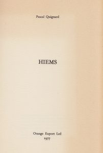 QUIGNARD (Pascal). Hiems. Malakoff, Orange Export Ltd, 1977. In-8, broché, couverture rempliée.