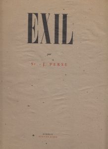 SAINT-JOHN PERSE. Exil. Buenos Aires, Éditions des Lettres françaises, 25 septembre 1942. Plaquette in-4, en feuilles, couverture imprimée et rempliée.