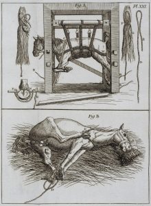 Provenance ancienne : le splendide médaillon doré, représentant une bibliothèque, devant laquelle figure un personnage allégorique de la justice, et qui figure sur les plats, est celui de la première bibliothèque des avocats de Rennes, qui devint ensuite la bibliothèque publique. 1, De la construction ; 2, Du harras ; 3, De l'écuyer & du harnois ; 4, Du chirurgien & des opérations ; 5, Du maréchal ferrant ; 6, De l'apoticaire ou des remèdes