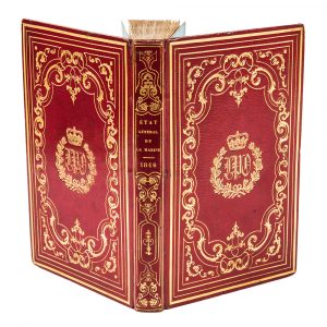 [MARINE]. État général de la Marine et des Colonies 18 janvier 1846. Paris, Imprimerie Royale, 1846 ; in-8 de viii-336 pp., maroquin à longs grains, filets dorés en encadrement sur les plats, médaillon en rinceaux et chiffre couronné au...