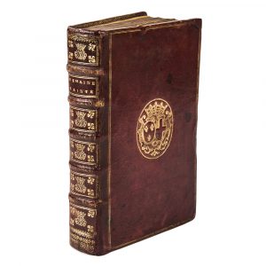 OFFICE DE LA SEMAINE SAINTE (…), à l’usage de Rome et de Paris. Paris, Dezallier, 1708 ; in-8 de [4] ff., frontispice compris, 659-[3] pp., maroquin rouge, filets dorés en encadrement sur les plats, armes au centre, dos à nerfs orné de...