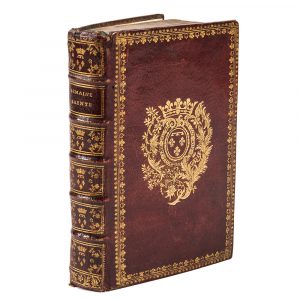  Reliure aux armes de Louis-Philippe, duc d’Orléans (1725-1785), prince doux et éclairé qui fut le père de Philippe-Egalité. Légers accrocs aux angles mais le maroquin est resté frais.