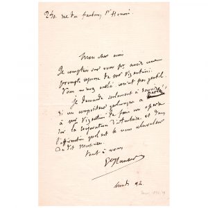 Gustave FLAUBERT (1821-1880). Écrivain. L.A.S. à un ami. [Paris] 240 rue du faubourg St Honoré lundi 4 [c. 1876]. 1 pp. in-8. À propos d’un éventuel opéra d’après la Conjuration d’Amboise de Louis Bouilhet. (…) Je comptais sur...