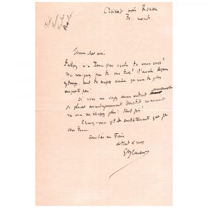 Gustave FLAUBERT. 1821-1880. Écrivain. L.A.S. à son cher ami (Ernest DAUDET). Croisset près Rouen, mercredi 30 (août ? 1876). 1 pp. in-8, avec 4 noms d’une autre main dans la marge supérieure. À propos du Château des cœurs que le...