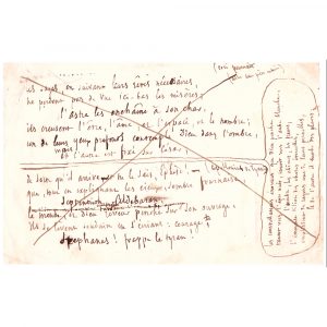 la marge de droite, biffé d'une large croix, avec au verso la mention "Dieu" (mais non retenu par Hugo pour le long poème épique éponyme recueilli dans les Œuvres posthumes). En marge, mention autographe : ceci pourrait être une pièce entière.