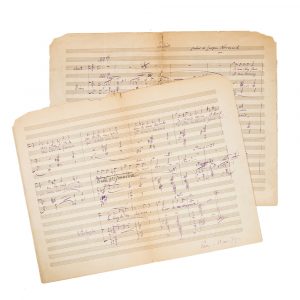 Jules MASSENET. 1842-1912. Compositeur. Manuscrit musical autographe "Le Souhait". Paris, 13 novembre 1879. 2 pp. obl. in-folio, à l’encre violette, lignes des portées imprimées ; pli central marqué, papier lég. bruni. ►Partition...
