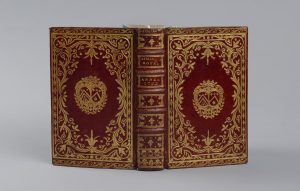 *** [Reliure aux armes]. Almanach Royal année bissextile 1792. Paris, Testu, 1792, in-8, reliure époque plein maroquin grenat, dos à cinq nerfs, caissons ornés de fleurs de lys répétées en fleurons et écoinçons, titre et millésime dorés,...