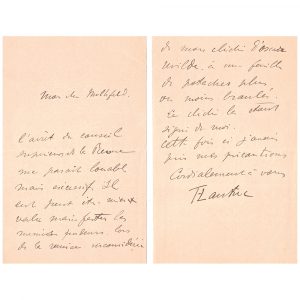 Henri de TOULOUSE-LAUTREC. 1864-1901. Artiste peintre. L.A.S. "HT Lautrec" à son cher Mulhfeld. S.l.n.d. 2 pp. in-8. ►Précieuse lettre à propos d’une illustration dans la Revue Blanche dont Lucien Muhlfeld était le secrétaire de...