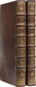 BOILEAU-DESPRÉAUX (Nicolas). Œuvres [...] avec des éclaircissemens historiques. Nouvelle édition revuë, corrigée & augmentée de diverses remarques. À Amsterdam, Chez François Changuion, 1729 ; 2 vol. in-folio maroquin rouge, auteur et...