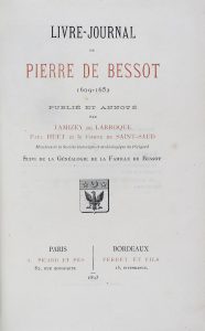 *** BESSOT (Pierre de). Livre-Journal de Pierre de Bessot, 1609-1652, publié et annoté par Tamizey de Larroque, Paul Huet et le Cte de Saint-Saud,… suivi de la généalogie de la famille de Bessot. Paris, Picard, 1893, in-8, 152 p., demi-basane...