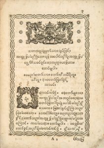 ►Très rare impression en birman sortie des presses de l'imprimerie de la Congrégation de la Propagation de la Foi à Rome, compagnie religieuse fondée en 1622 par le pape Grégoire XV et dont l'imprimerie était célèbre pour la variété de ses caractères typographiques.