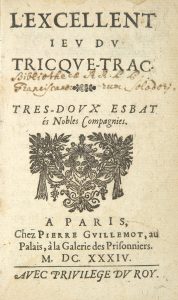►Rarissime édition originale du premier livre fixant les règles du trictrac, célèbre jeu inventé en Perse au IIIe siècle.