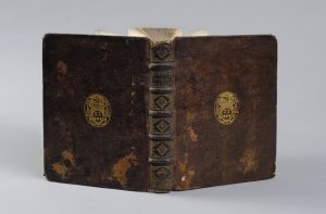 la dédicace, gravé par Giffart, reliure époque plein veau havane moucheté, dos à 5 nerfs, titre doré, caissons ornés, armoiries en médaillon dorées à chaque plat, tr. rouges (coiffes arrachées, coins usés, plat épid. avec petit trav. de ves au plat sup., reliure solide, fine mouillure marginale en tête du titre puis sporadique, rares rousseurs, intérieur très convenable, à grandes marges). Aux armes de Daniel Huet, évèque d'Avranches. Mention ms. ancienne au titre de provenance d'une maison religieuse, avec carton typogr. collé en pied : " Ne extra hanc Bibliothecam efferatur. Ex obedientiâ ". Ex-libris de La Borderie et de la bibliothèque de Clays-Palys.