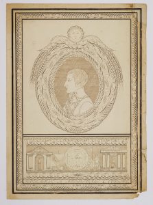 ovale surmonté d'un angelot, avec, dans le registre inférieur, des scènes allégoriques et un cartouche portant la mention Hommage à Bonaparte 1er Consul.