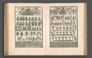 Le titre, gravé en taille-douce avec les allégories de la Théologie et de la Rhétorique, porte les armoiries de Grégoire XIII à qui le livre est dédié.
