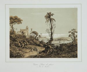 ►►Édition originale de ce très rare et bel album de voyages, illustrée de 12 planches dessinées et lithographiées en deux tons par Auguste Borget, plus une composition lithographiée sur le titre montrant l'Arche sacrée des Hindous, reprise sur le premier plat du cartonnage.