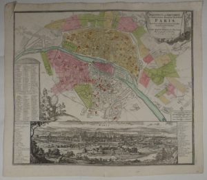 HOMANN (Johann Baptist). Prospect und Grundriss der Weltberühmten Königliche Haubt Stadt Paris… Nuremberg, [circa 1720]. 485 x 570 mm.