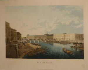 - ARNOUT (Jules). Place de la Concorde. Paris, Hauser, [circa 1860]. Bel exemplaire en couleurs, avec certaines parties gommées. - NOËL. Vue de Paris. Paris, Bance, [circa 1820]. Jolie vue des berges de la Seine et du Louvre gravée par F. Hegi. Une petite tache marginale.