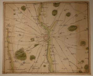 Ensemble de deux cartes manuscrites, encre brune et aquarelle, exécutées de la même main, figurant les environs des villes de Saint-Quentin et de Vermand, dans le Vermandois, région de la Picardie. La première carte figure Saint-Quentin et ses environs, sur la rivière Somme. Elle s'étend du nord au sud entre Bellenglise et Cerizy, et d'ouest en est entre Attilly et Marcy. Y figurent les rivières de la Somme et de l'Omignon (orthographié Aumignon), la ville de Saint-Quentin avec ses fortifications, les chemins et parties boisées. Les villes et villages principaux sont très joliment représentés par de petites maisons. La carte est orientée, avec le nord placé à gauche. L'échelle est en lieues. La seconde carte figure les environs de Vermand, dans l'arrondissement de Saint-Quentin, et s'étend au nord jusqu'à Le Verguier, au sud jusqu'à Attilly et Caulaincourt, à l'ouest jusqu'à Pœuilly et Hancourt (orthographié Jehancourt), et à l'est jusqu'à Pontruet et Gricourt. Y figurent la rivière de l'Omignon (orthographié Aumignon), la ville de Vermand avec ses bâtiments, les chemins et parties boisées. Les villes et villages principaux sont très joliment représentés par de petites maisons. La carte est orientée, avec le nord placé à droite. L'échelle est en lieues. L'encre du trait d'encadrement a par endroits transpercé le papier des deux cartes (avec manque dans la marge de la seconde), la partie droite de la première carte et la partie gauche de la seconde ont bruni, petites déchirures marginales, rousseurs.
