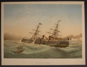 - Le steamer La Ville du Havre. Compagnie générale transatlantique. Lithographié en couleurs. Légères rousseurs. - La Victoria. Paquebot faisant le service entre Folkestone et Boulogne s/m. Lithographie en couleurs. Beaux exemplaires. - Pêche à la sardine. Devant le Port-Louis à l'entrée de la rade de Lorient. Dessiné et lithographié par Le Breton. Déchirures et frottements marginaux.