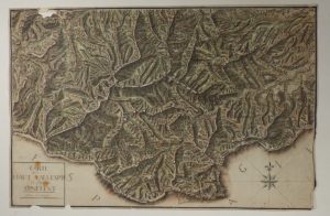 Belle carte manuscrite, encre brune et aquarelle, d'une partie du département actuel des Pyrénées-Orientales, correspondant à une région délimitée au sud par la frontière espagnole, au nord-ouest par la vallée de la Têt avec les villes d'Olette et Villefranche-de-Conflent, et comprenant la vallée du Tech de sa source jusqu'au Boulou. Y sont figurés les cours d'eau, les villes et villages, et les montagnes. La carte est orientée, l'échelle est en toises, le relief est marqué par ombres portées. Quelques piqûres, marges froissées avec de petites déchirures sans manque important sauf dans la partie supérieure gauche.