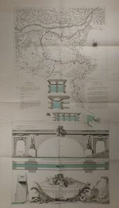 Grande et belle carte figurant le projet de canal, appelé canal de Provence, entre Aix et Marseille, dressée par l'ingénieur hydraulique Jean-André Floquet. Ce vaste projet d’alimenter Aix, Marseille et leurs environs des eaux déviées de la Durance, fut mis en œuvre à partir de 1752. Il dut cependant être rapidement abandonné en raison du coût des travaux et du refus de son principal commanditaire, le duc de Richelieu, de verser les fonds nécessaires. Pour s'être plaint du manque de foi du ministre, Floquet sera enfermé à la Bastille où il mourra en 1771. Il faudra attendre 200 ans pour que le canal de Provence devienne réalité. La carte est ornée d'un beau cartouche de titre contenant la dédicace au duc de Richelieu, et de représentations des aqueducs projetés. La carte est orientée d'une rose des vents. Bel exemplaire finement aquarellé à l'époque. Petite déchirure sans manque au bas de la pliure centrale.