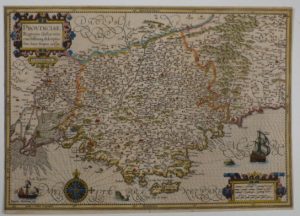 - BRAUN (Georg) & HOGENBERG (Frans). Avignon. [circa 1590]. 305 x 470 mm, sous passe-partout. Superbe plan en élévation figurant Avignon, finement aquarellé à l'époque, et orné de petits personnages et des armes de la ville. On y voit encore le Pont Saint-Bénézet au complet. Texte en latin au dos. Déchirures marginales. - MERCATOR. Provinciæ regionis Galliæ. [circa 1610]. 355 x 510 mm. Carte en coloris de l'époque, ornée de cartouches, d’une rose des vents et de navire voguant sur les flots. Exemplaire coupé au cadre et remonté sur carton.