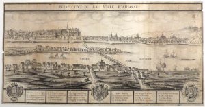 [AMBOISE - DESSIN] CHAPUISET (de). Perspective de la ville d'Amboise. 1774. 335 x 650 mm.