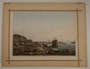 GARNERAY (Ambroise Louis). [Vue de Bordeaux prise près du quai de la Douane]. [circa 1830]. 325 x 460 mm, montée par les bords sur carton fort.