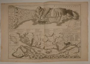 Planche figurant un plan de Gibraltar et un plan de Mahon, avec une petite carte de l'île de Minorque. Déchirure dans les marges gauche et droite.