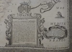 Très rare carte de l'Aragon, et la plus importante pour la cartographie espagnole des xviie et xviiie siècles. La carte de João Baptista Lavanha, appelé par les Castillans Juan Bautista de Labaña ou de Alavaña, est l'image la plus ancienne connue de l'Aragon, et la première carte espagnole produite selon des procédures scientifiques. Elle devint la base de toutes les cartes ultérieures de la région. La carte a été levée par ordre de la députation du royaume d'Aragon par le cartographe João Baptista Lavanha (c. 1555-1624), qui employa pour ce faire la méthode de la triangulation. De 1610 à 1615, Lavanha voyagea dans tout le pays, parcourant toutes les localités, montagnes, vallées et lieux dignes d'intérêt, et déterminant les positions astronomiques. La carte fut imprimée à Madrid sur six plaques de cuivre entre 1619 et 1620. Le style de dessin est sobre, bien éloigné de l'ostentation et de l'esthétisme des cartes contemporaines publiées aux Pays-Bas. Lavanha représenta les éléments essentiels du territoire de façon claire et utilisa une calligraphie facile à lire. L'on connaît seulement deux versions de la carte. La première fut imprimée par Diego de Astor vers 1620. La seconde, dont notre exemplaire fait partie, fut corrigée et améliorée par Tomas Fermin de Lezaun en 1777. Quelques exemplaires peuvent par ailleurs être accompagnés de deux grandes colonnes de texte de part et d'autre de la carte (dont l'un est de Lupercio Leonardo de Argensola, ajouté à la fin du XVIIe siècle, et l'autre de Tomas Fermin de Lezaun en 1777), mais la plupart de ceux que nous avons repérés dans les collections publiques en sont dépourvus. João Baptista Lavanha, ingénieur, mathématicien et cosmographe portugais, est considéré comme le plus brillant des géographes portugais. Il travailla au service des rois d'Espagne Philippe II et Philippe III, et fut nommé cartographe en chef et chroniqueur du royaume par ce dernier. Sa carte eut un grand succès. Pour preuve, l'un des plus grands atlas du XVIIe siècle, celui de Blaeu, la reproduit, et, contrairement à toutes les autres cartes d'Espagne y figurant, et restées anonymes, celles d'Aragon seules portent l'indication de la source qui est exclusivement Lavanha. La carte est ornée d'un cartouche de dédicace aux députés du Royaume d'Aragon, orné de grotesques et d'arabesques, aux armes du Royaume d'Aragon et de Sardaigne. L'échelle est en bas et à gauche dans un cartouche orné de guirlandes maintenues par deux cygnes et un grotesque. Exemplaire lavé et doublé, quelques manques doublés ; coupé au ras du trait d'encadrement, et parfois en deçà ; petites déchirures au niveau de la bordure. Gonzalo de Reparaz-Ruiz, Revue géographique des Pyrénées et du Sud-Ouest. La Cartographie terrestre dans la Péninsule ibérique au XVIe et au XVIIe siècle et l'œuvre des cartographes portugais en Espagne, 1940 ; Bibliothèque Numérique Mondiale, Carte du royaume d'Aragon de Juan Bautista Labaña.