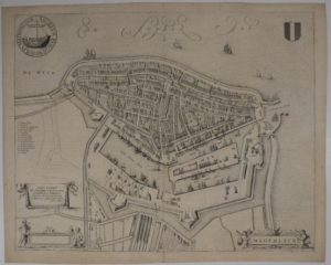 - Middelburgum. 465 x 507 mm, sous passe-partout. Belle vue à vol d'oiseau très détaillée de la ville de Middelbourg, montrant les maisons, les ponts, les parcs, les moulins, etc. Elle est ornée des armes de la ville. Texte en néerlandais au verso. Marges coupées, manque redessiné dans le bord droit de la gravure. - Medemleck. 465 x 507 mm, sous passe-partout. Vue à vol d'oiseau très détaillée de la ville de Medemblick, montrant les maisons, les ponts, de nombreux navires, etc. Elle est ornée des armes de la ville. Vues issues du Toonneel der Steden, texte hollandais au verso.