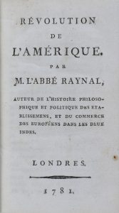 *** [Amérique] [Impression de Saint-Lô]. RAYNAL (abbé Guillaume-Thomas). Révolution de l'Amérique. Londres, [Davis ?], 1781, in-8, 173 p., [1] f. (errata et table) [Sans le portrait ?] [Relié à la suite] : BAUCLAIR (Paul-Louis de)....