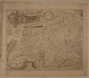 - GYGER (Hans Conrad). Helvetiæ Rhætiæ et Valesiæ cæterorumque confœderatorum ut & finitimorum populorum tabula geographica et hydrographica nova & exacta. Zürich, 1683. En deux feuilles jointes de 560 x 830 mm. Très rare et importante carte de la Suisse, gravée par Conrad Meyer. Seconde édition revue sur la première de 1657. Elle est ornée d'un cartouche et de nombreux blasons, avec une description géographique et historique en latin. La carte de Gyger fut reprise par Visscher, Sanson d'Abbeville ou encore Jaillot. Très important manque à la partie inférieure gauche de la carte (50 x 280 mm) correspondant à un cartouche contenant des blasons, petits trous, déchirure, brunissure tout le long de la jonction des deux feuilles. - ZOLLINGER (A.). Inclytæ Urbis et Ditionis Bernensis. Bâle, J.J. Turneÿsens Seel. Wittib. & Eerben, 1734. En deux feuilles jointes de 435 x 555 mm. Très rare carte figurant le canton de Berne, ornée d'une vue de la ville. Bande de papier rajoutée et collée sur la marge gauche.