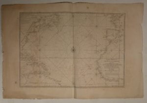 - DAUSSY (P.). Carte de l'océan Atlantique septentrional. 1834. 590 x 880 mm. Jolie carte portant, d'une main de l'époque, de nombreux tracés des routes prises par des navires à la fin du XIXe siècle. Quelques rousseurs et déchirures marginales. - DÉPÔT DE LA MARINE. Carte réduite de l'océan-occidental, comprenant les costes d'Europe et d'Afrique. 1738. 525 x 745 mm. Belle carte de l'océan Atlantique, ornée d'une rose des vents au centre. Pli central, légère moisissure au verso apparaissant légèrement au recto.