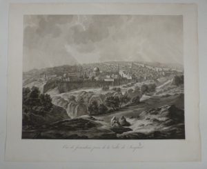 - Vue de Jérusalem prise de la Vallée de Josaphat. 420 x 540 mm. Gravure par Debucourt d'après un dessin de Forbin. - Mosquée d'El Haram, à Jérusalem. 420 x 540 mm. Gravure par Debucourt d'après un dessin de Forbin. Beaux exemplaires.