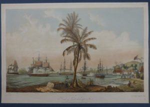 LE BRETON (Louis). [TAHITI]. Rade & port de Pape-Iti. Arrivée au mouillage du C. Amiral Dupetit Thouars. Paris, Delarue, 1844. 300 x 490 mm, sous passe-partout.