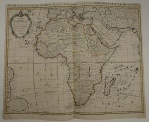 - JANSSON (Johannes). Æthiopia superior vel interior ; vulgo Abissinorum sive presbiteri Ioannis Imperium. Amsterdam, [circa 1650]. 385 x 495 mm. Jolie carte gravée de l'Afrique de l'est, ornée de nombreux animaux comme des éléphants, autruches et singe, ainsi que de cartouches animés de personnages. Défauts à la pliure centrale. - HONDIUS (Jodocus). Abissinorum sive pretiosi Ioannis Imperiu. [Amsterdam, circa 1640]. 340 x 485 mm. Jolie carte de l'Afrique centrale, avec une petite carte du Congo, ornée de cartouches. Texte en français au verso. Coloris de l'époque. - HONDIUS (Henricus). Barbaria [et] Cartaginis sive potius Tunetani celeberrimi Sinus nec non fortalitij... [et une carte d'Égypte]. [Amsterdam, circa 1640]. 350 x 470 mm. Jolie carte de l'Afrique du Nord, ornée d'un navire. Texte en français au verso. Coloris de l'époque. Quelques rousseurs. - HONDIUS (Jodocus). Fessæ et Marocchi regna. [Amsterdam, circa 1640]. 355 x 485 mm. Superbe carte ornée de navires, d'un monstre marin et de cartouches. Avec une vue du Peñón de Vélez de la Gomera. Coloris de l'époque. Petites mouillures et déchirures marginales. - DE L'ISLE (Guillaume). Carte d'Afrique dressée pour l'usage du Roy. Amsterdam, Covens et Mortier, [circa 1740]. 480 x 625 mm. Jolie carte de l'Afrique ornée d'un cartouche aux armes de France. Contours en coloris de l'époque.