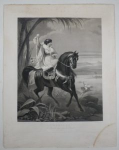 Suite de 4 estampes allégoriques sur les 4 continents et les 4 saisons, gravées par Jazet d'après des tableaux de Schopin : - L'Amérique. Amazone effrayée par la marée montante (Automne). - L'Asie. Indienne surprise par un serpent (Été). - L'Afrique. Le rendez-vous dans le désert (Printemps). - L'Europe. Départ pour la chasse aux ours (Hiver). Salissures et mouillures marginales. On joint 5 estampes sujets divers dont une grande lithographie en couleurs par Victor Adam figurant une caricature sur le tabac.