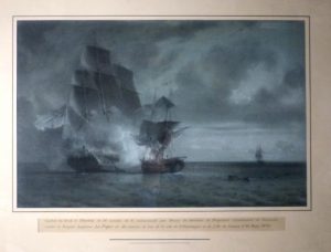 [MARINE]. GILBERT (Pierre Julien). Combat du Brick le Phaëton de 16 canons de 6, commandé par Henry de Saulses de Freycinet Lieutenant de vaisseau contre la Frégate Anglaise La Pique de 48 canons, en vue de la côte de S.t Domingue et de L'Île de...
