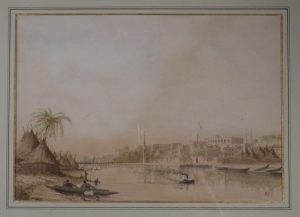 [AQUARELLE]. Ensemble deux vues d'une colonie française. 250 x 355 mm, chacune, cadre de bois noir.
