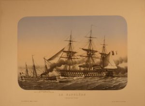 - Voyage de S.M. l’Empereur dans l’Ouest. Brest. Paris, Gosselin, 1858. 300 x 485 mm. Belle estampe en deux tons dessinée et lithographiée par Le Breton. Petites rousseurs. - Le Yacht impérial La Reine Hortense. Paris, Wild, [circa 1860]. 370 x 610 mm, sous passe-partout. Dessiné par Leroux, lithographié en couleurs par Le Breton. Quelques rousseurs. - Le Napoléon. Vaisseau de 2e rang. Paris, Gosselin ; Lyon, Gadola, [circa 1850]. 310 x 460 mm. Lithographie en couleurs signée Le Breton.