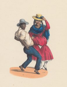 Ces estampes anonymes représentent différents types d'Amérique du Sud et en particulier du Pérou : religieux, pénitents, cavaliers, porteurs d'eau, jardinier, danseurs, tapada limeña, une scène de corrida, etc. Quelques rousseurs.