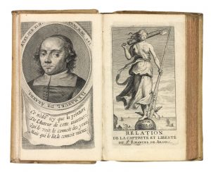 Édition originale. Elle est ornée d'un titre-frontispice allégorique et d'un portrait de l'auteur gravés en taille-douce. Le récit d'Emmanuel d'Aranda (1602-1686), capturé par les Barbaresques et réduit en esclavage en Algérie durant un peu plus d'une année, est suivi d'un Sommaire de l'antiquité de la ville d'Alger et de trente-sept Relations particulières consignées par l'auteur durant son esclavage. L'ouvrage connut un succès considérable et l'on en imprima près de dix éditions au XVIIe siècle, en français, mais aussi en anglais et en flamand. Bel exemplaire en vélin du temps. Willems, n°1974.