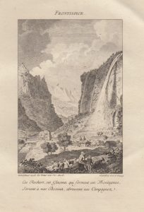 Première édition française, rare et très recherchée, de cet important ouvrage sur les Alpes suisses et les glaciers du massif du Mont-Blanc. L'édition originale, en allemand, avait paru à Berne en 1760 sous le titre Die Eisgebirge des Schweizerlandes. Elle a été librement traduite par le chevalier Louis-Félix Guinement de Kéralio pour cette édition. L'ouvrage est particulièrement recherché pour son illustration, dessinée par J. L. Aberli, S. H. Grim, D. Dürringer, G. Walser et d'autres et finement gravée en taille-douce par A. Zingg, comprenant un frontispice, deux grandes cartes dépliantes, une planche de légende et dix-huit vues hors texte repliées in fine. La planche XIII est la plus ancienne vue panoramique connue du Mont-Blanc, selon Jacques Perret. Bel exemplaire, grand de marges, en reliure du temps. De la bibliothèque du baron de Tournelles, avec ex-libris. Incomplet de l'explication des planches (pp. 361-372) et de la table des noms topographiques allemands (pp. i-xiv). Épidermures sur les plats. Perret, n°2072.