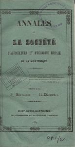 [MARTINIQUE]. Annales de la Société d'agriculture et d'économie rurale de la Martinique. Paris, Appert [puis] Saint-Pierre-Martinique, Barthélémy Thounens, 1839-1840. In-8, demi-basane fauve, dos lisse, tranches marbrées (Reliure de l'époque).