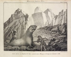 Édition originale, publiée par L.-S. Brissot-Thivars d'après les journaux de l'auteur. Elle est illustrée de six planches dépliantes, lithographiées par G. Engelmann, dont quatre cartes et deux vues montrant la faune de l'île Amsterdam ainsi qu'une scène de chasse à l'éléphant de mer. Natif de Lambézellec dans le Finistère, Pierre-François Péron (1769-1846) fit de nombreux voyages comme matelot puis officier dans l'Océan Indien et aux Antilles, où il pratiqua le commerce d'armes et d'esclaves, et vécut de la chasse au phoque sur l'île Amsterdam durant plus de trois ans. Séduisant exemplaire dans son premier cartonnage. Menus frottements sur les mors et les coiffes ; légères mouillures sans gravité ; coupure réparée à une carte. Hill, n°1330.