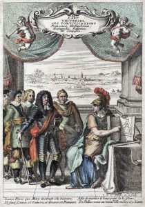 figures gravées sur cuivre à pleine page, reliure époque plein veau havane, dos à 5 nerfs et orné, titre doré, tr. mouchetées (nerfs frottés, tache au plat sup. ; mouillure aux premiers f., puis marg. angul., qq. ff. brunis).Troisième édition revue, corrigée et augmentée. Composé de 6 traités, le dernier paginé séparément, chacun d'eux précédé d'un titre-frontispice gravé sur cuivre (les 4 premiers dessinés et gravés par Le Pautre, les 4e et 5e gravés par N. Cochin d'après Ferrand), avec en outre un titre-frontispice général en tête de volume, par Le Pautre, et colorié. Ex-libris chev. de Palys.