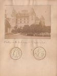 Ensemble de 10 photos sur papier albuminé sur le château de La Rochefoucauld réuni dans un petit livret dérelié portant sur la page de garde le sceau des armes de la Famille La Rochefoucauld ainsi que son blason (dessin aquarellé) et un historique manuscrit sur la généalogie de cette famille .